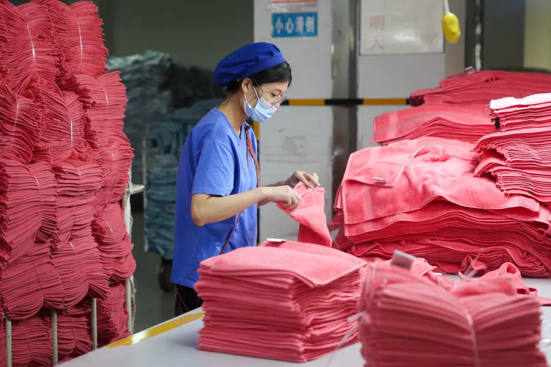 記者了解到,除了新技術新工藝之外,孚日集團還牽頭制定了《精品純棉毛巾》團體標準和《綠色設計產品評價技術規范巾被織物》行業標準。目前,企業生產的毛巾已經出口到全球80多個國家和地區,與幾十家世界500強企業和知名品牌公司建立了戰略合作關系,每年企業大約能生產11億條毛巾。